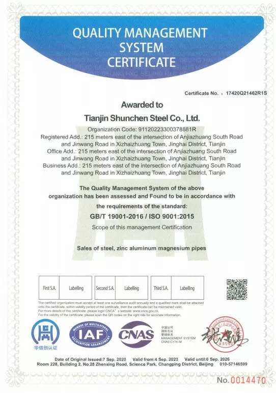 Tianjin Shunchen Industrial Company har akkumuleret over tre årtiers produktionserfaring i stålindustrien. Virksomheden har ISO 9000, 3A-systemcertificeringer samt EU's CE-certificering og har etableret en komplet industriel kædelayout fra galvaniseringsbearbejdning til salg og distribution. Gennem strenge 12-trins procesflows og en tre-trins omfattende inspektionsmekanisme har virksomheden opnået en rekord med nul årlige kvalitets- og sikkerhedsulykker og nulordre standarder i 12 på hinanden følgende år. Shunchen Industrial opretholder en helårsbeholdning af galvaniseret stålspot på over 20.000 tons, der danner et supermarked i galvaniseret stål i stor skala, der integrerer lager og distribution. Lageret dækker et areal på 10.000 kvadratmeter, hvilket giver solid støtte til den integrerede produktions- og salgsservice.