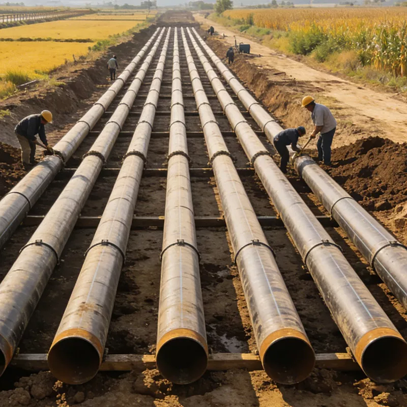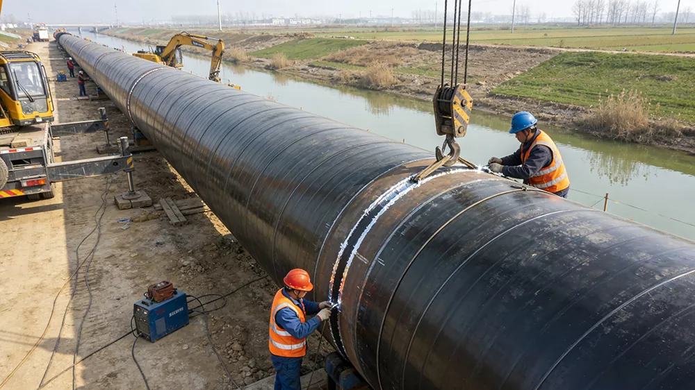 Anvendelige scenarier: Vandafledningsprojekter i stor skala, vandoverførselsprojekter, oversvømmelseskontrol og dræningsprojekter, hovedrørledninger til vanding af landbrugsjord, vandforsyningsprojekter til drikkevand, ø-vandforsyningsprojekter osv. Kernekravene er høj strømningskapacitet, korrosionsbestandighed og modstandsdygtighed over for vandtryk. De kan tilpasses komplekse miljøer såsom flodsenge, saltpåvirkede områder osv. De kan effektivt modstå vanderosion og geologisk nedsynkning, hvilket sikrer en stabil overførsel af vandressourcer og garanterer sikker drift af vandbeskyttelsesprojekter. De spiller en vigtig støttende rolle i centrale nationale vandbeskyttelsesprojekter. Scenebeskrivelse: På byggepladsen for Jinghai Water Diversion Project bruges spiralrør med stor diameter til lægning af hovedrørledninger. Rørene passerer gennem floder eller landbrugsområder, og arbejdere udfører tætningsbehandling. På øens vandforsyningsprojektsted bruges spiralrør med stor diameter med 3PE anti-korrosionsteknologi til at modstå havvanderosion og opnå sammenkobling af vandressourcer mellem øen og fastlandet.